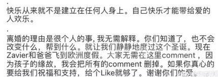 郑秀珍突然在SNS宣布自己离婚了,目前手续已经办得差不多。至于外界最好奇的离婚理由,郑秀珍表示是很个人的事,没有具体给出。怕大家为她担心,她还补了一句:“快乐从来就不是建立在任何人身上,自己快乐才能带给爱的人快乐。如果你真心要给我们祝福和支持,给个like就够了。”感觉挺潇洒的,态度很赞。