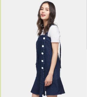 百变的英伦风背带式连衣短裙作为风靡全球的时尚单品,简洁又性感。修身的设计、考究的流畅线条,无处不散发着自由奔放的迷人特质。潇洒的英伦风,裙身上白色纽扣与深蓝色单宁材质的碰撞,释放青春活力,彰显你的独特魅力。