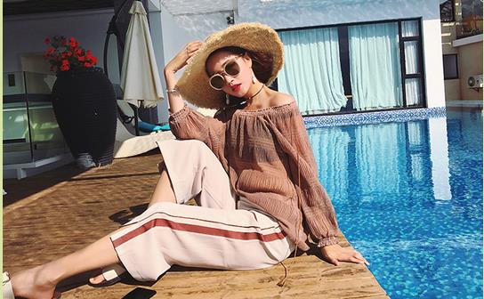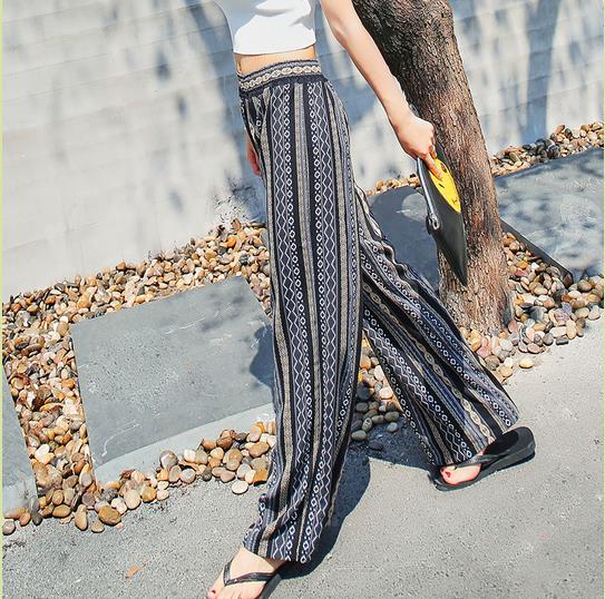 2017新款夏季海边度假裤波西米亚长裤沙滩民族风高腰阔腿裤裤子女