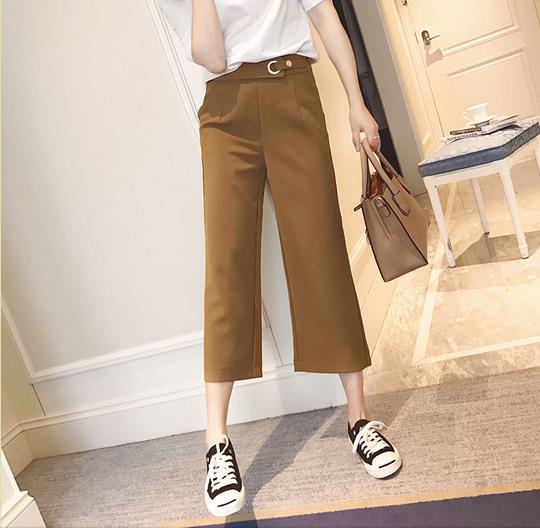 2017春装新款女装韩版OL金属扣高腰显瘦提臀休闲裤阔腿裤九分裤