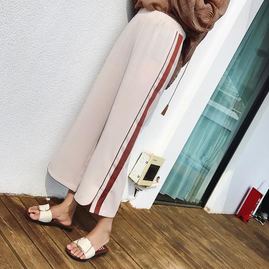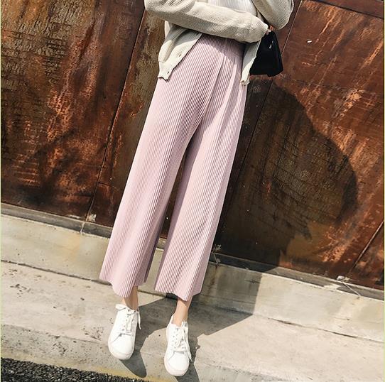 2017春秋韩版条纹高腰针织直筒宽松休闲裤九分裤阔腿裤女士裤子潮