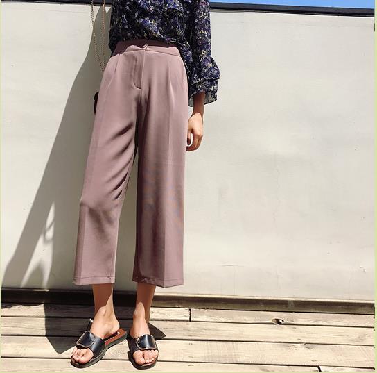 欧版正品腰带扣高腰显瘦阔腿裤垂顺雪纺八分裤喇叭裤女大直筒裤