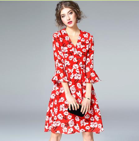 推荐理由:这款真丝裙,独特的修饰显瘦廓形,完美包裹女性身形,显瘦显高,袖子的新机喇叭中袖设计,露出小小一段肌肤,有一点端庄,又有那么点俏皮。