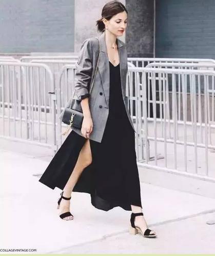 知性气质十足的西装和柔美性感的吊带裙碰撞起来就是一套精致LOOK~