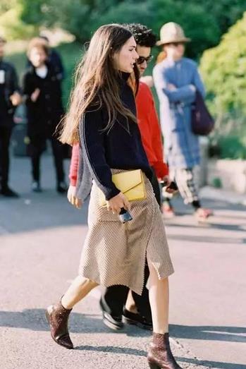 开叉裙可谓是这个秋天最炙手可热的单品之一。裙子开个衩,若隐若现地秀出你的美腿,这种神秘的性感最是令人心动倾慕无法抗拒。趁着温度还不算太低,赶紧穿起来吧!