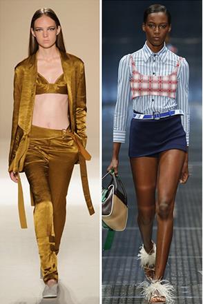 胸衣是近年来最流行的趋势,目测在2017春夏还会接着流行下去,也许有人会觉得这个趋势不好驾驭,其实除了玩性感风意外,还可以借助花纹与款式间的混搭拗出小清晰的风情,比如Prada秀场上的条纹衬衫与格纹胸衣的搭配。