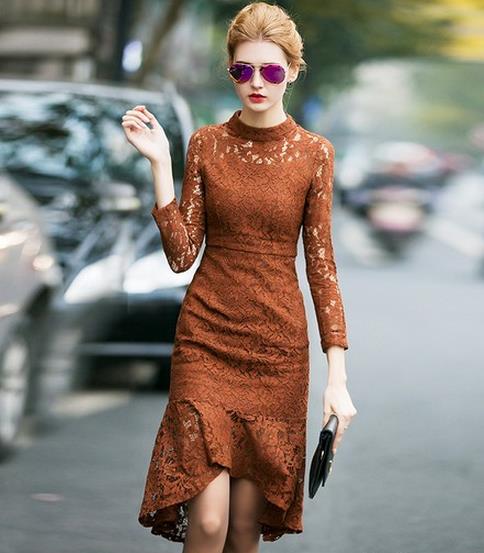 多一分少一分都不能达到美的高度,只有将尺寸拿捏的刚刚好才有可能避免成为路人甲。经典的大地色系,虽然没有桃红柳绿的花枝招展,但收腰鱼尾加上蕾丝也是风情款款无人能及的抢镜武器。