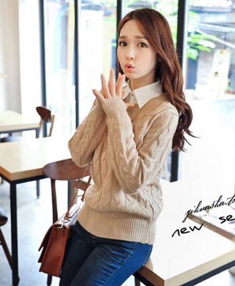 纯色针织套头毛衣若不用其他颜色来点缀,那么少不了要请麻花针织纹理来暖场。有了它立体的修饰,再单一色彩的毛衣也不觉单调。袖口、衣摆均采用罗纹针织来收尾,邀请牛仔裤来为腿部阻隔严寒,温暖与美丽同在。