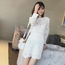 | 【蕾丝长裙配什么上衣】无蕾丝不女人蕾丝连衣裙是女神最好的伙伴!小香风黑白撞色镂空蕾丝裙,偏高腰很显身材好,胸部以下全是腿的既视感,单穿还是内搭都好穿,不挑人不挑场合,天凉了搭一件针织外套或毛衣甚至是大衣都很不错哦~搭配方面也特别用心,链条包,拼色鞋以及外搭的小外套,都是小香风的标... |