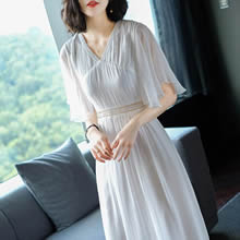 | 喇叭袖雪纺连衣裙一款看是时尚休闲的样式,在简约的同时,也增加了最亮眼的一面,雪纺材质搭配了荷叶袖,产生不一样的效果。后面才是刚能看出来气质,大大的荷叶袖显得腰身更加纤细,一举一动,顾盼生姿。网纱碎花连衣裙蝴蝶印花,甜美飞袖,修身显瘦,轻薄。舒适品质面料:面料具有优秀的柔软性和光泽... |