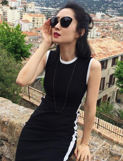黑白相间的无袖包臀裙,合身的剪裁更加凸显身材,半扎发型,墨镜遮面,时髦又减龄!