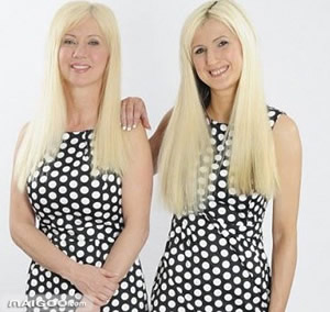 看到这张照片,你或许会认为上面的珍妮特和简·坎利夫是对双胞胎姐妹。你错了,她们是有血缘关系,但不是姐妹,而是母女!珍妮特花费了1.3万美元来消除她和女儿之间的年龄差异。现在,她和少女一样,拥有闪亮的金发,修长的身材,体重一样,身高也差不多,除了眼睛颜色不同,她们几乎一模一样。而且,珍妮特每天的穿衣打扮也跟女儿一样。