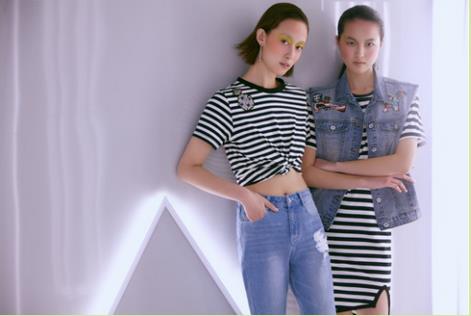 白色短袖修身连衣裙,黑色条纹装饰的袖口与腰身,穿在身上非常显瘦,搭配红色帆布鞋,美丽清新,也是不少女生喜欢的风格。