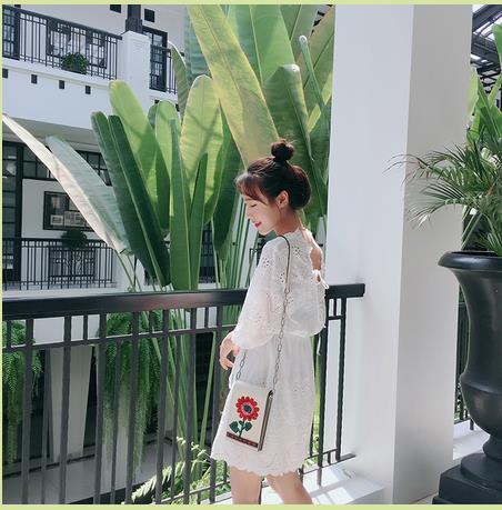 简约的白色调,总是能带给人一种干净又清纯的感觉,让人忍不住的想靠近,精致的绣花加上镂空的设计,让连衣裙看起来更加仙气飘飘,收腰的设计恰到好处的裙长,既能拉长腿型又能修饰身型,小个子MM又能轻松驾驭。