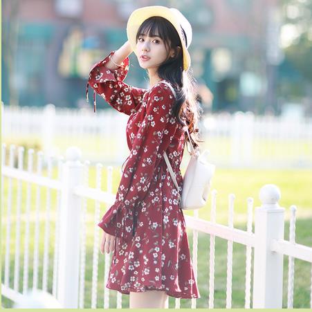 今年碎花元素大行其道,不管是连衣裙还是上衣,处处都可以看到碎花元素的融入,可见这股复古风潮是越吹越猛啊~白色的小碎花点缀在酒红色的裙身上,不仅增添了复古感,上身也更加衬托肤色。
