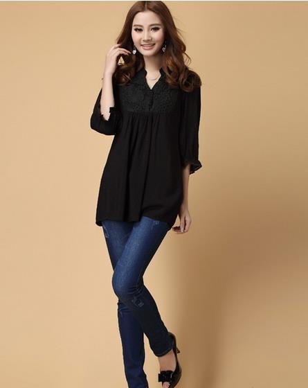 显瘦搭配技巧:大码打造,专为肥胖MM设计,加上流行的蕾丝元素,倍添时尚。下搭一条紧身牛仔裤+高跟凉鞋,既能拉长身形,又显出瘦身材。两全其美!