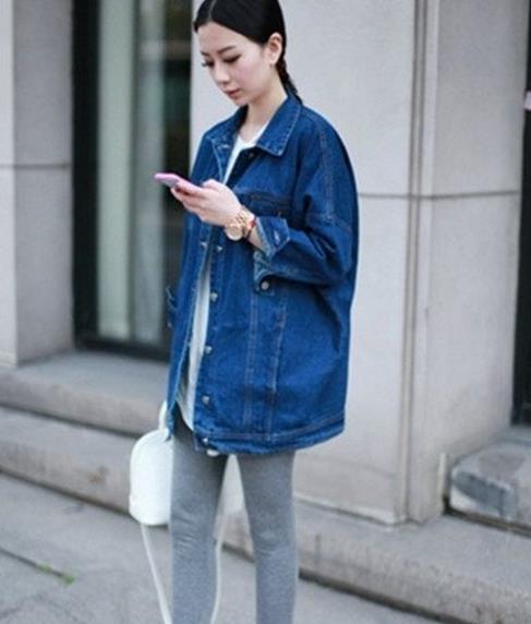 假如你有这样一件款式宽松,版型硬朗的中性风长款牛仔衬衫,可以搭配紧身Leggings+高帮系带罗马靴,绝对会是你最好的选择,上宽下紧的穿法王道从来就无需怀疑。