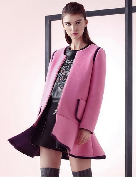 有型已经不单是男人的追求,现今的女性也在追求这一时尚新高度。简单利落的剪裁,让衣服的上半部分看起来中性利落,下摆的荷叶边却为衣服添了一份柔美,便如那粉红与黑色的撞色般恰到好处。
