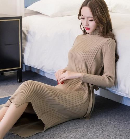 中长款不规则下摆毛衣裙