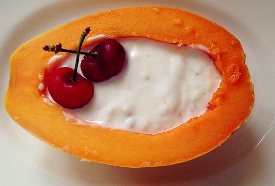 材料:酸奶150ml、2匙炼乳、青木瓜汁适量。