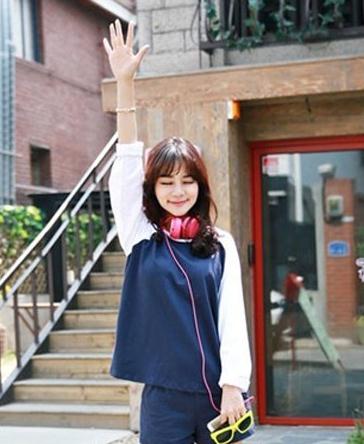 时尚点评:蓝白色拼接的上衣,搭配蓝色利落型的短裤,成为最抢眼的运作套装,再搭配白色的运动鞋,则显得非常青春且活力感十足,加上白色的平底鞋时髦有范。