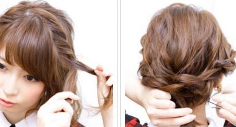 step1:沿着刘海取出左右两侧的头发,分别扭转成二股辫。