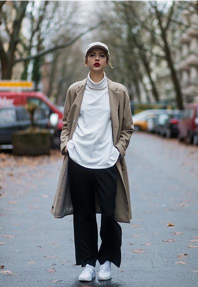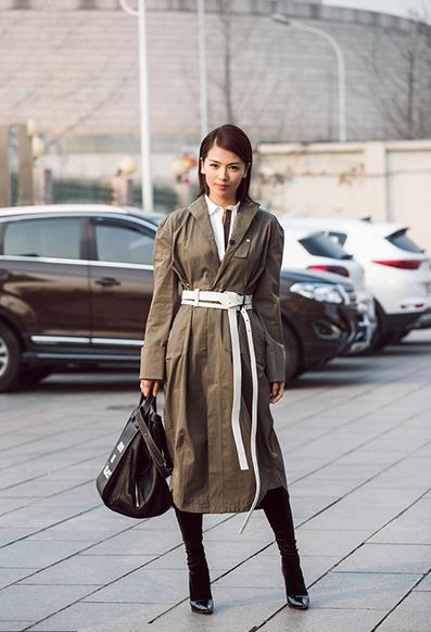 很多人将风衣敞开穿,但其实风衣束腰穿也很迷人,