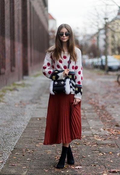 毛衣混搭裙装向来是早春最美的打开方式,而在诸多半身裙中,又属浪漫飘逸的百褶裙与毛衣混搭效果最是出众养眼