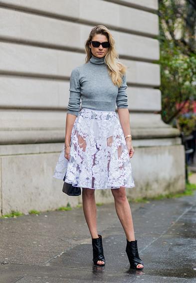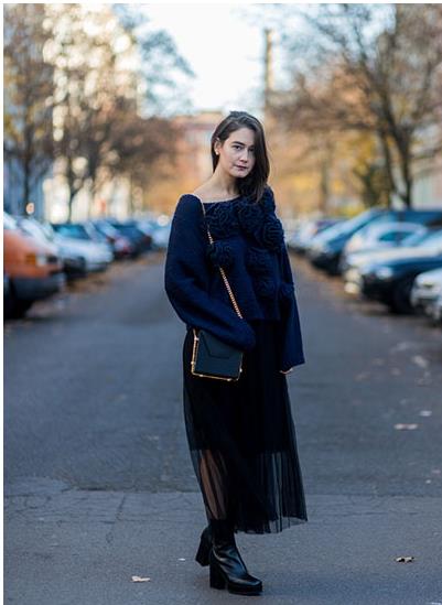 毛衣配纱裙也是2017的大热搭配套路之一。轻盈唯美的纱裙,既能凸显造型的层次感,还可以削弱毛衣的厚实感,让你又美又仙、轻盈而动人