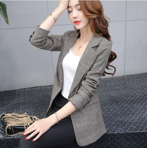 2017春季新款韩版女装修身百搭休闲格子小西服外套女春秋