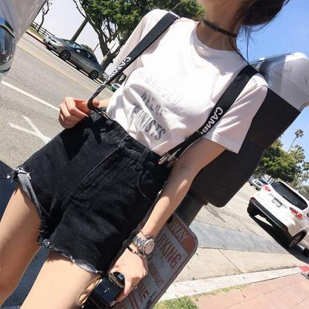韩版黑色毛边高腰牛仔短裤女夏显瘦学生百搭热裤