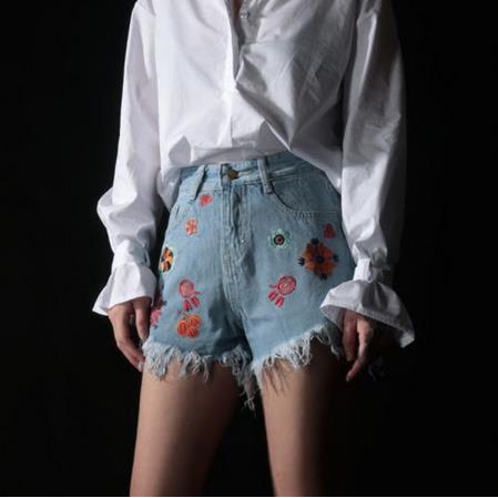 NO.2 刺绣高腰短裤