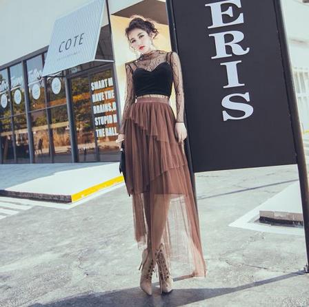 这款半身裙的网纱是它的最大亮点,好几层的网纱让这件半身裙特别有层次感,上厚下薄的设计让腿部若隐若现,非常吸引人,不规则的设计让人看起来非常时尚,特别的潮流大气,上身搭配蕾丝元素特别合适,喜欢的朋友不要错过