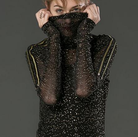 夹杂银丝的面料看起来很洋气,阳光下有闪闪的光泽,织感非常细腻,比较显瘦,挺阔感更强,有两侧的双排挑洞,给整件针织增加了呼吸感,视觉上腰部分更瘦,能够让你的曲线完美的展现,符合每个女孩子的需要。
