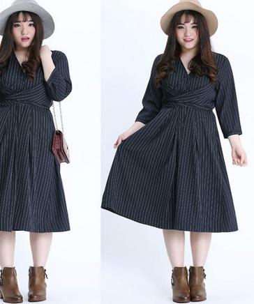 竖条纹连衣裙是最经典的潮流风尚,修身立体剪裁的A字版型,使裙型更藏肉更时尚,特色的的显瘦V领设计,彰显日韩系个性风格,舒适显?C,易于穿着,同时体现通勤气质及灵活搭配,气质与舒适指标满槽。