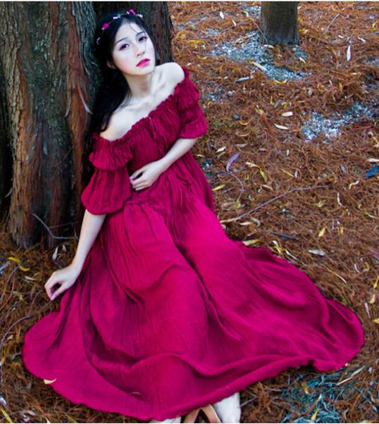 这款森系复古风与宫廷的公主范完美结合的连衣裙,传达出穿越时光的美。一字领的设计,小露肩的性感,让优雅女人味足足的。胸部位置做了宫廷风的设计,上身非常的典雅,仿若来自贵族宫廷的公主。