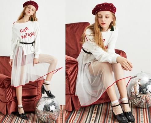这条连衣裙真的是很特别,白色的卫衣拼接着网纱,时尚又不失甜美感,宽松的插肩袖加上拉链设计更是不失个性,还能遮掩微胖女生的肉感,搭配一款红色的短裤,时髦又不失小性感。