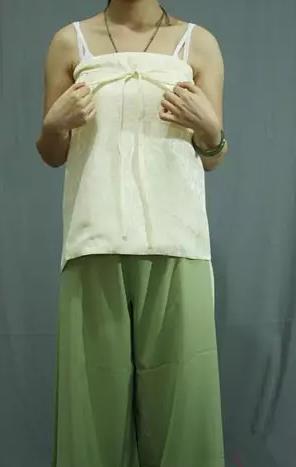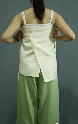 4.将抹胸两端的系带绕到身前胸口处系结.
