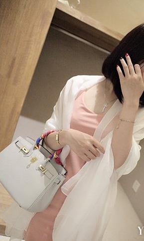 淡粉色的背心连衣裙版型修身,设计韩范,勾勒出女性凹凸有致的好身材,小香风十足,外搭白色透明薄纱披肩,配色柔和好看,白色包包搭配使得整体造型更加完整。