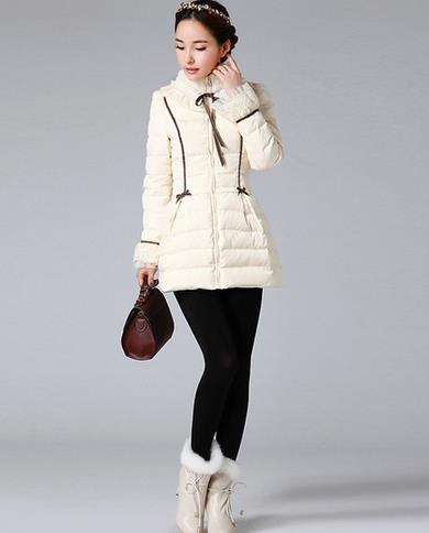 蝴蝶结收腰中长款羽绒服