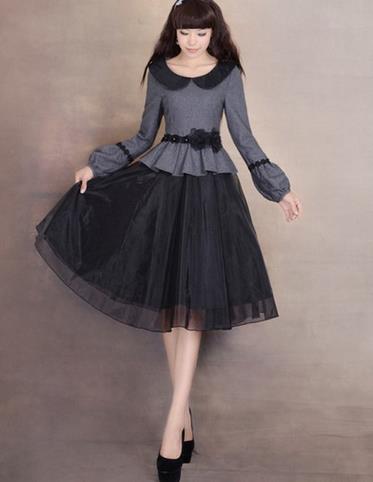 娃娃领长袖连衣裙