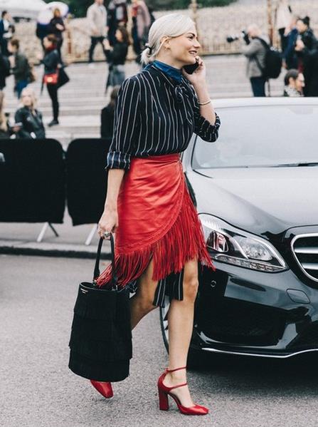 Patricia Manfield,简单版皮质小黑裙有了交叉围裹也能性感帅气得非同凡响,一身红黑配惊艳万方。