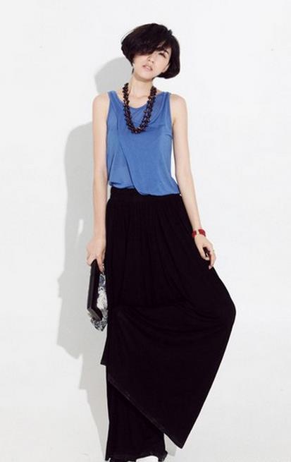 04 高腰款式能拉长下半身比例,只需简单搭配背心或衬衫就很有型,再加上一枚复古的手拿包,走动见翩然飞舞的裤角,一定是街头的一道风景线。