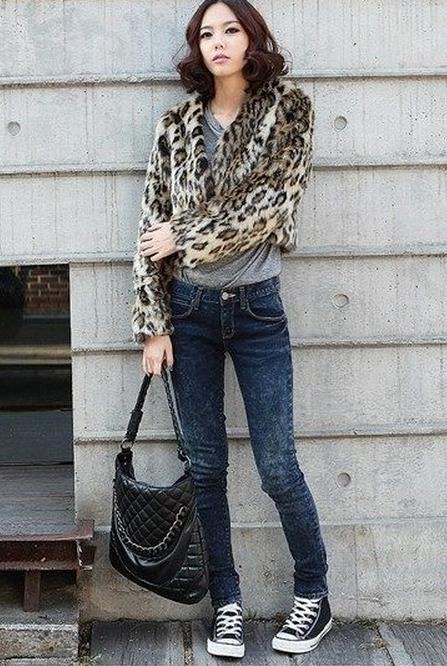 充满高贵华丽感的短款外套非常适合熟女哦,简单的上衣搭配牛仔裤的休闲风搭配就已经很好看,厚厚的皮毛豹纹外套穿起来特别能够显现潮女的修长身段哦~