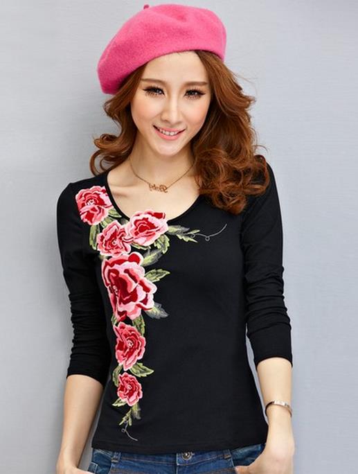 也许你喜欢小家碧玉的清新淡雅,也许你喜欢大家闺秀的气度高贵,都可以用打底衫来满足你。一朵朵开得正艳的牡丹花,奢华大气,完美展现了国花的姿态,让黑色也瞬间亮眼无比。