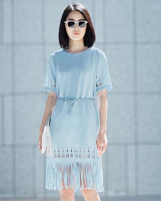 简约自有简约的好处,只是为了做个讨人喜的女孩,别只顾着玩高冷,忽略了女人味的重要性,曼妙的流苏边传递着千丝万缕的风情,整个身段都显得摇曳生辉,镂空设计不仅仅是清凉,还是淡淡性感的象征。