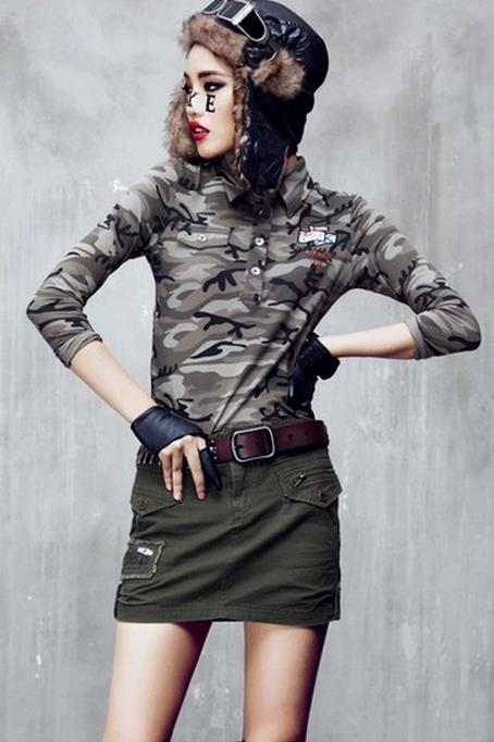 姑娘们的着装风格有许多种,短裙的风格也五花八门,你一定能找到自己钟爱的那款,即使你喜欢的是在夏天比较偏门的军装风,也完全可选择酷帅的军绿色短裙来完美演绎,吸睛魅力无法阻挠。