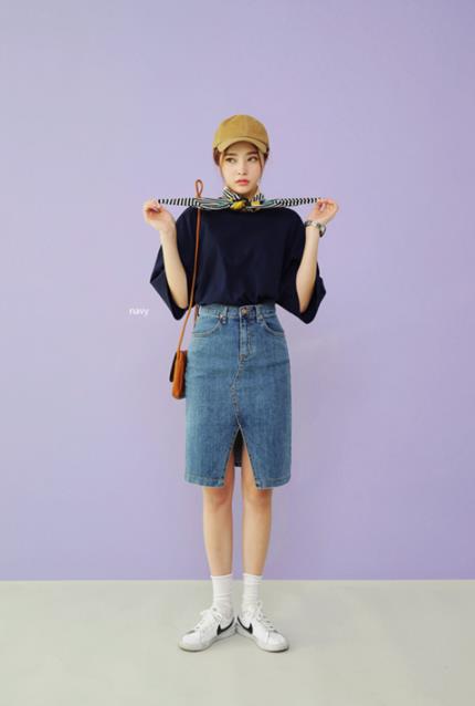 搭配看点:学院气息十足的休闲鞋搭配牛仔半身裙十分减龄,配上宽松的纯色T,再搭一条印花丝巾up时尚度,这样的look不管是出街还是上课都很有范。