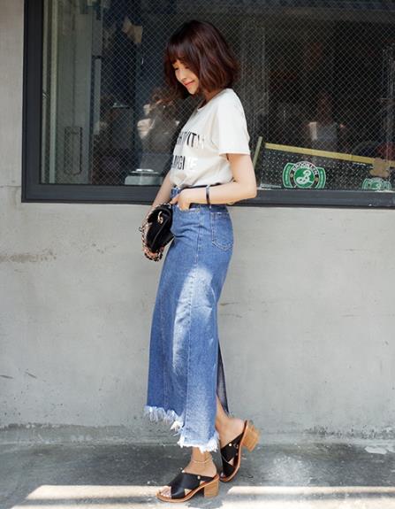 搭配看点:粗跟鞋比较显高也很率性,搭配牛仔半身裙很有高街范儿。