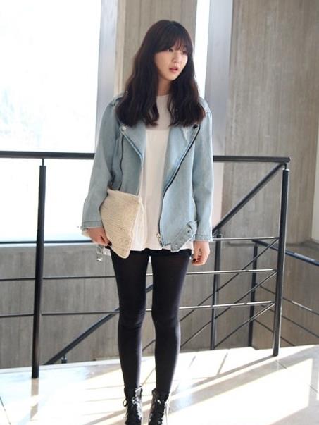 牛仔外套不一定要Oversize才适合微胖MM,直筒的版型,注意用内搭的长T恤遮住肥大的屁股,增加层次感。但是要注意腿上不要再增加层次。否则会形成乱糟糟的分层。